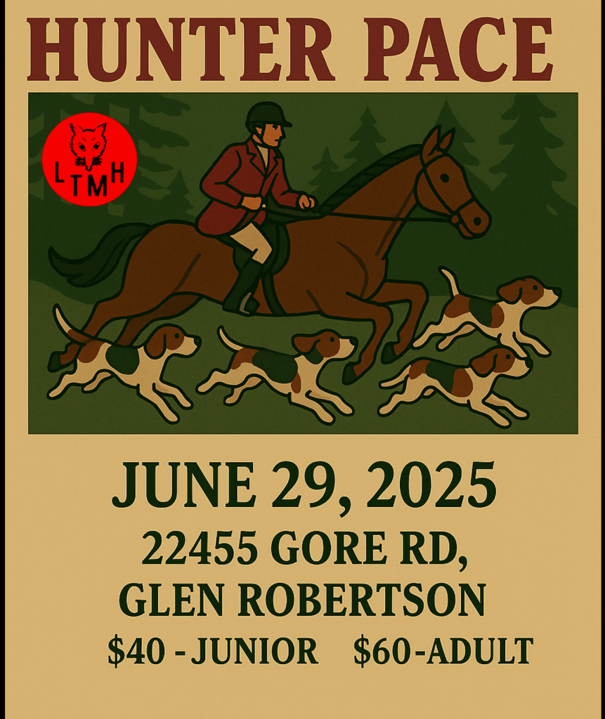 A hunter pace is a low-key competitive event derived from foxhunting. Teams of two or three riders follow an outdoor course laid out over terrain which is meant to simulate the riding conditions encountered during a foxhunt.